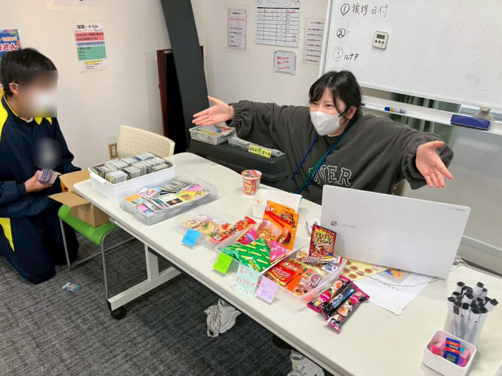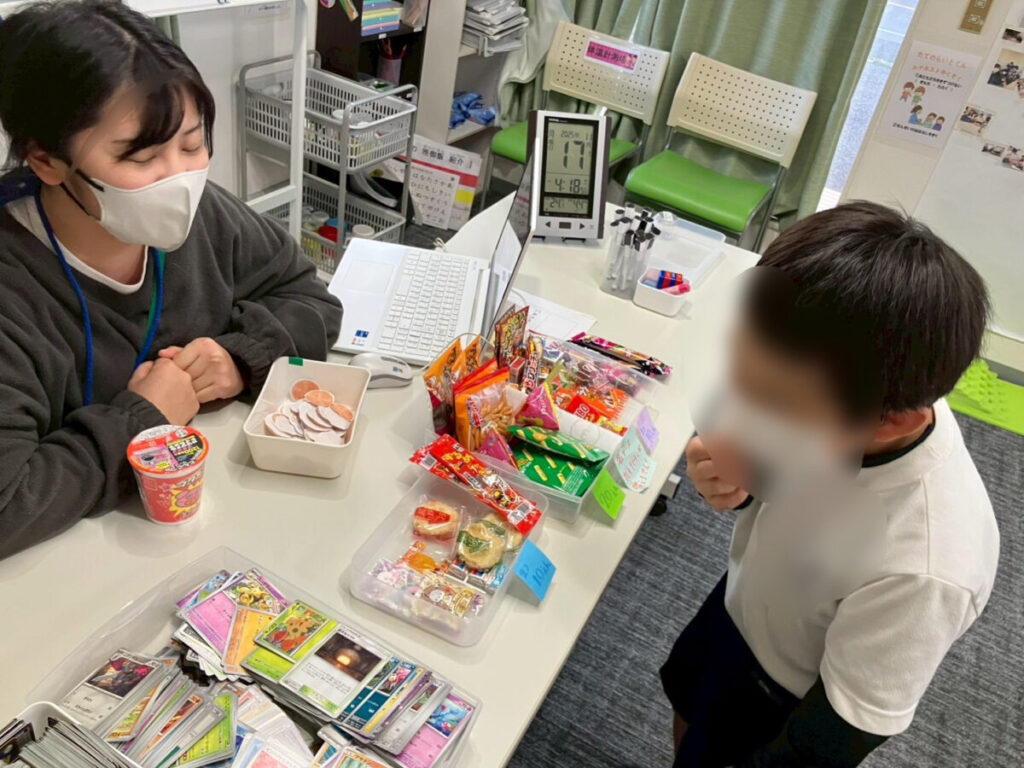 買えるのはお菓子だけじゃなくて、子どもたちに人気のカードも!