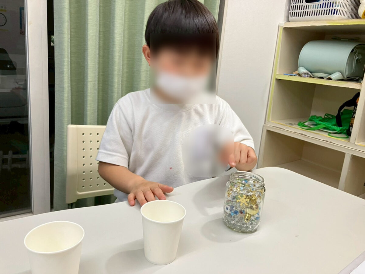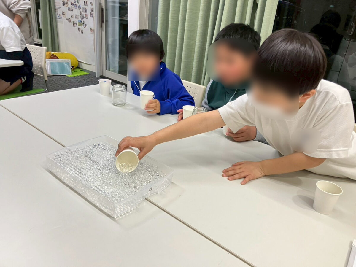 透明タピオカこと消臭ビーズをコップにすくいます🤩