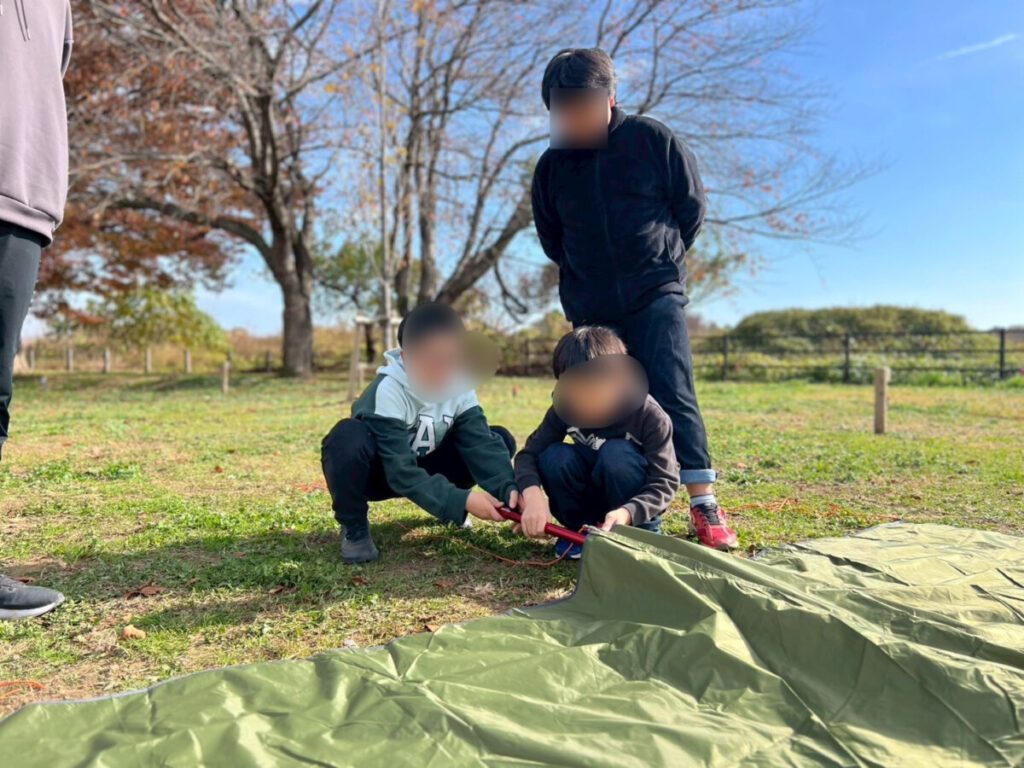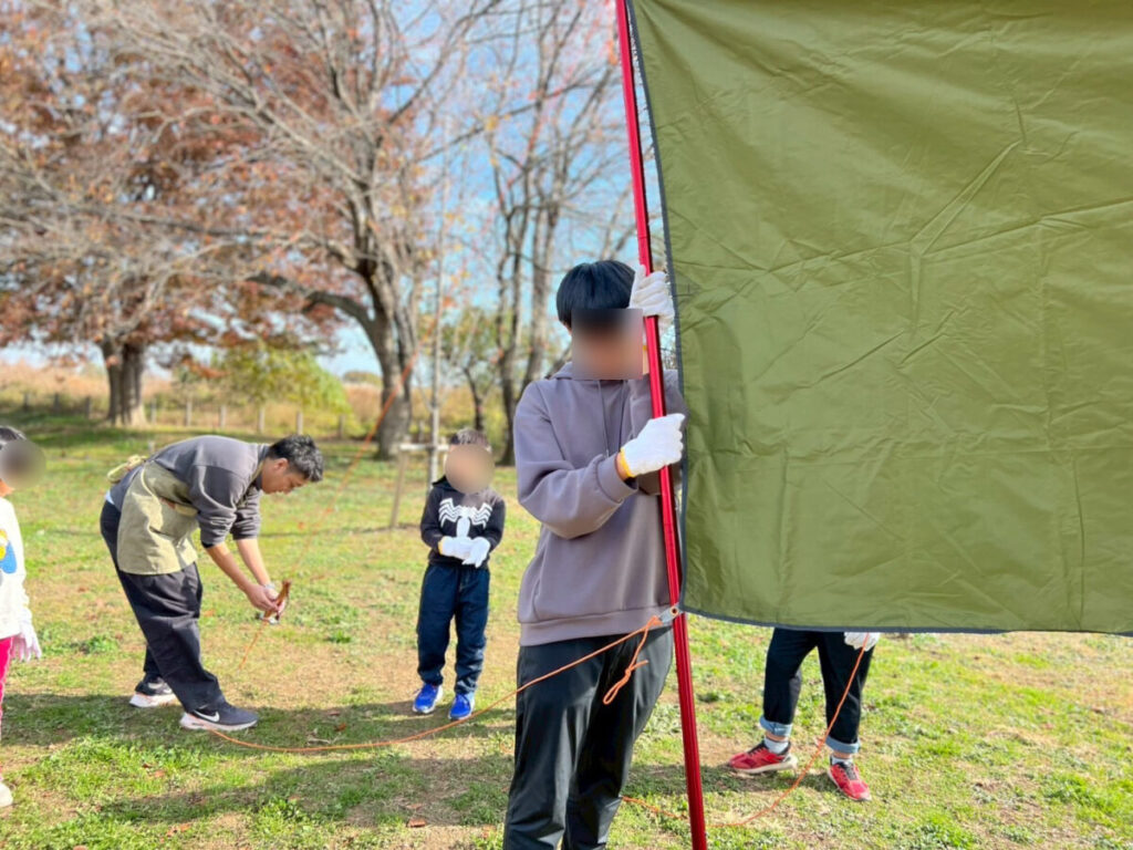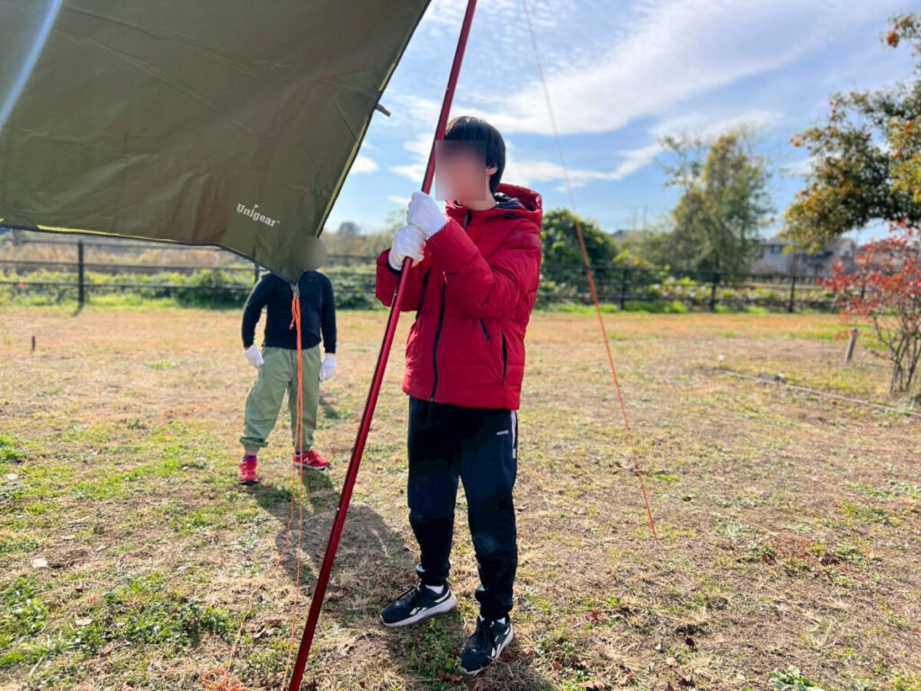 と言うことでみんなで協力してタープ建てにチャレンジしました✨