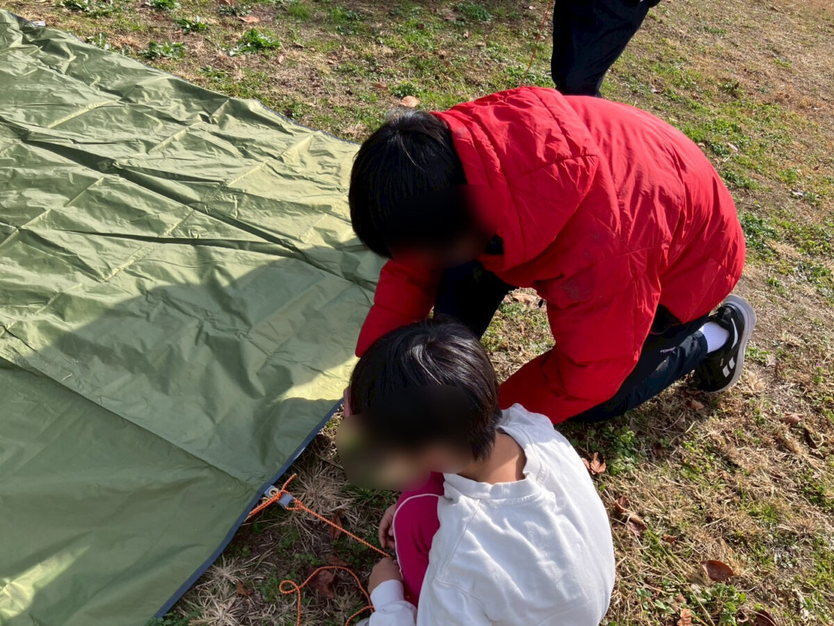 と言うことでみんなで協力してタープ建てにチャレンジしました✨