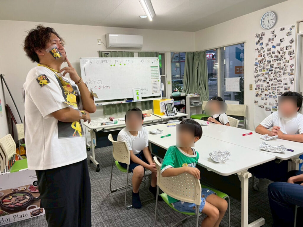 熱い鉄板に気をつけながら、ゆびんなーを置いていく子ども達🔥