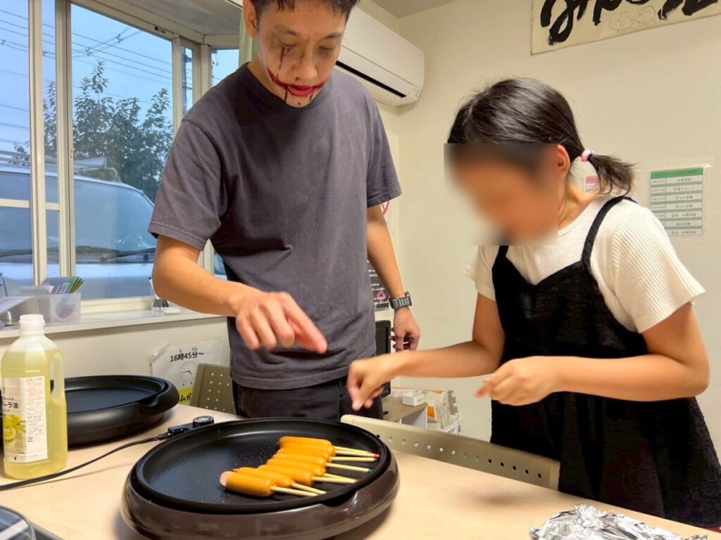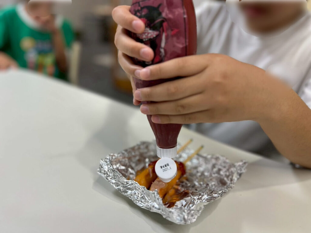 熱い鉄板に気をつけながら、ゆびんなーを置いていく子ども達🔥