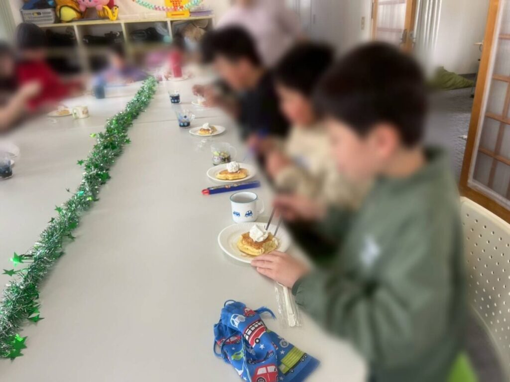焼き立てのパンケーキを囲んで、みんなでおしゃべりしながら「いただきまーす!」おなかも心もいっぱいになって、すっかりルナネストの一員です🌟
