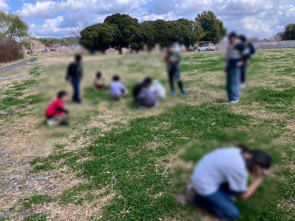 みんな真剣に草むらを探しています😁