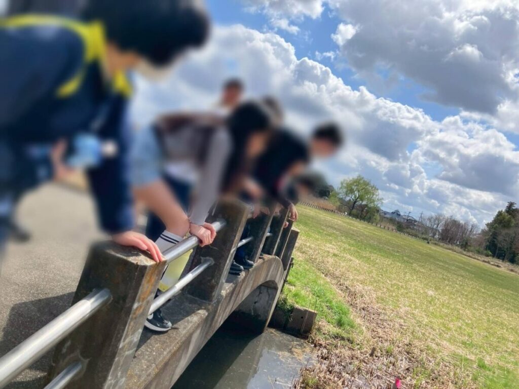 公園内には、小さな橋もあって、みんなで覗き込んだりしました