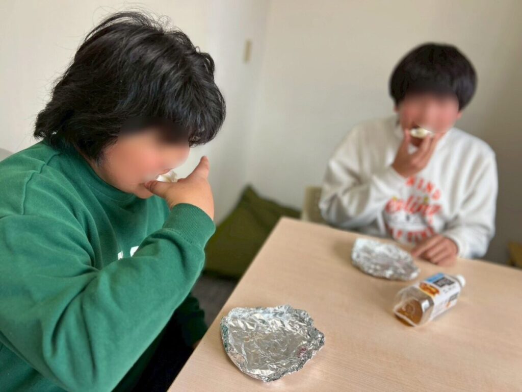 「先にこれ食べてから、これ食べようよ」と誘いあう生徒や
